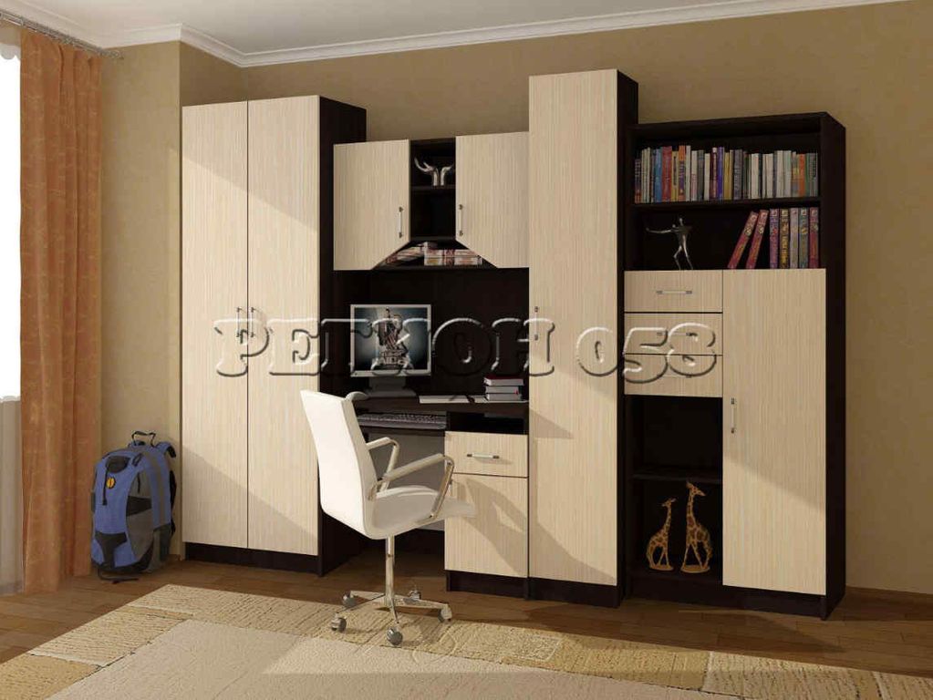Юниор ЛДСП – практичный и экономный вариант. Подойдет как и для подростка, так и для маленьких хозяев комнаты.