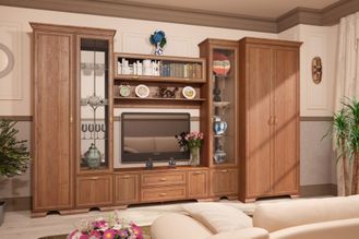 Гостиная «Венеция» выполнена в тёмном декоре «Клён Торонто», в лучших классических традициях. Шариковые направляющие полного выдвижения обеспечивают комфортную эксплуатацию выдвижных ящиков, и использование всего пространства ящика. Ручки металлические цвет – «Хром глянцевый» с белой вставкой