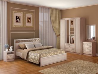 Спальня «Брайтон» выполнена в светлом декоре «Ясень Асахи», в лучших классических традициях. Модульная серия «Брайтон» укомплектована фасадами с накладным профилем с декоративным орнаментом.