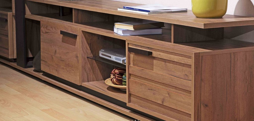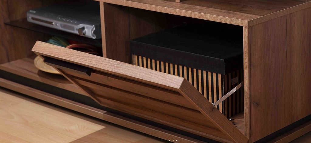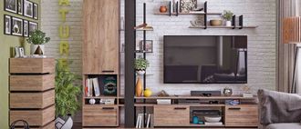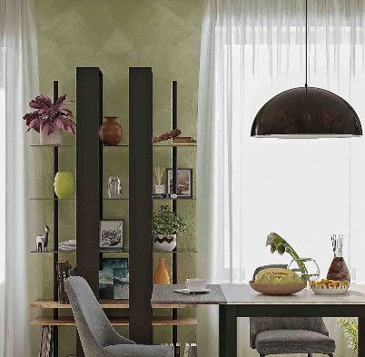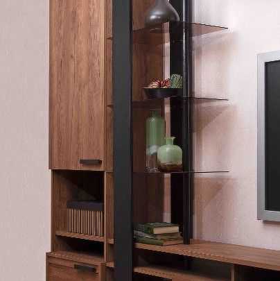 Изящный и стильный стеллаж с открытыми полками не займёт много свободного места, но станет значимой интерьерной деталью гостиной. Комбинация стеклянных полок и элементов «под дерево» выглядит стильно и очень достойно. Благодаря невидимым глазу креплениям создается впечатление, что стеклянные полки зависли в воздухе. Но несмотря на кажущуюся легкость и воздушность, тонированное стекло (бронза) выдерживает нагрузку до 5 кг, что позволит разместить на стеллаже любимые книги, диски, комнатные растения или предметы декора. Регулируемые опоры слегка приподнимут стеллаж над полом, облегчая уборку, а также позволят компенсировать незначительные неровности пола.