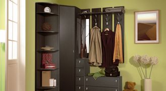 Традиционная для прихожей Вешалка 21 - с крючками на разной высоте. Всем членам семьи будет удобно вешать и снимать верхнюю одежду – каждому по росту. Для большой прихожей возможно составить компоновку из Вешалок 22 или 23 с Вешалкой 21. При этом не используется полка для головных уборов («лишняя» деталь №94) из комплекта поставки Вешалки 21, так как при сборке применяется полка с одной из вешалок: 22 или 23.