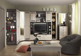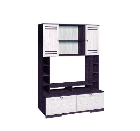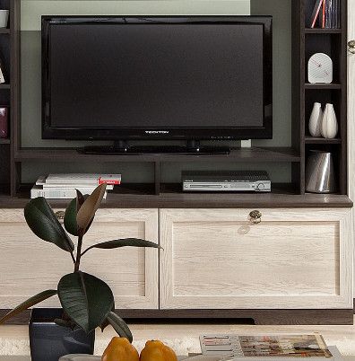 Центральный модуль стенки для гостиной, обладает широким функционалом: навесной шкафчик, тумба и подставка под ТВ, выдвижные ящики, боковые стеллажи для мелочей. Распашные дверцы навесного шкафчика - это рамочные фасады в профиле МДФ. Внутренние полки регулируются по высоте. Видимая задняя стенка изготовлена из кашированной ХДФ-плиты того же древесного декора, что вся коллекция. Глубокие ящики внизу комплектуются телескопическими шариковыми направляющими полного выдвижения, что обеспечивает им повышенную вместительность и прочность. Ящики глубиной 500 мм, высотой 341 мм и шириной 672 мм выдерживают нагрузку до 25 кг. Шкаф МЦН обязательно крепите к стене за подвесы!