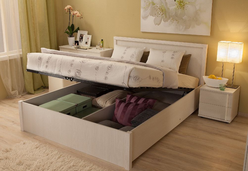Двуспальная кровать размером 160 * 200 см с подъемным основанием добавляет в спальню еще одно полноценное место для хранения, сопоставимое со шкафом для одежды. Основание легко поднять за специальную текстильную петлю. Обратите внимание, что пока не положен матрас, основание не будет опускаться. Дно образуемого под кроватью ящика - листы ХДФ - укладывается прямо на пол и предотвращает вещи от возможных загрязнений. Их легко протереть влажной тряпочкой. Высота расстояния от пола до царги кровати составляет 60 мм. Простые четкие линии, естественные для мебели декоры - древесный Дуб Сонома и благородный Орех шоколадный - легко обыграть в окружающем интерьере под тот стиль, который вам больше всего нравится. Толстые надежные опоры (49 мм) из профиля МДФ.
