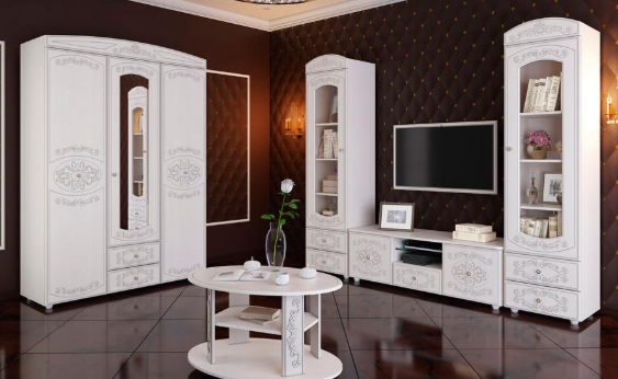 Изысканная мебель в светлых тонах не оставит равнодушным ценителей изящных форм и красоты. Она дает ощущение уюта, вносит нотки аристократичности, а благодаря большому числу разнообразных модулей, создаст интерьер для спальни, детской, гостиной и даже прихожей.