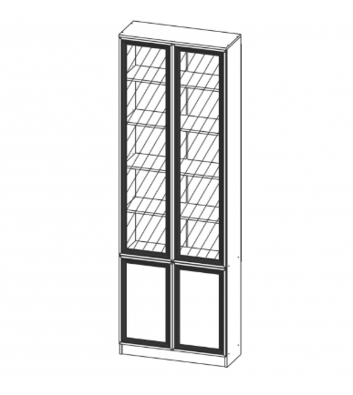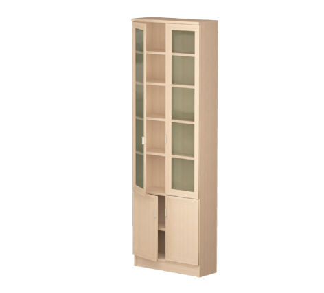 Шкаф В-19 Оливия обладает значительной вместительностью благодаря ширине 800 мм. Изделие может использоваться самостоятельно или являться основным элементом мебельного комплекта. Шкаф состоит из корпуса, семи полок и четырёх створок. Распашные верхние дверцы остеклены, нижние – глухие. Корпус плотно прилегает к полу, конструкция нижней части обеспечивает устойчивость изделия. Шкаф подходит для организации пространства в жилых и офисных помещениях.