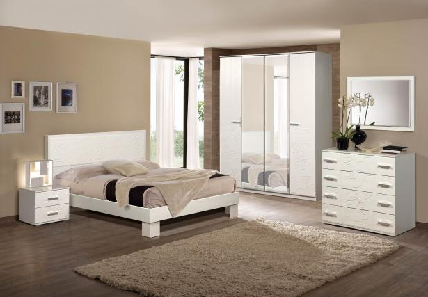 Мебельный гарнитур «Розалия» обладает изысканным дизайном благодаря декору фасадов в виде распустившихся роз. Комплект включает шкаф с двумя отделениями, двуспальную кровать, две прикроватные тумбы и комод с четырьмя выдвижными ящиками. Производитель предлагает два цветовых решения корпуса: полностью светлый или тёмный в сочетании с нежным тоном фасада. Ручки в виде скоб обеспечивают удобство открывания и подчёркивают изящный стиль мебели.