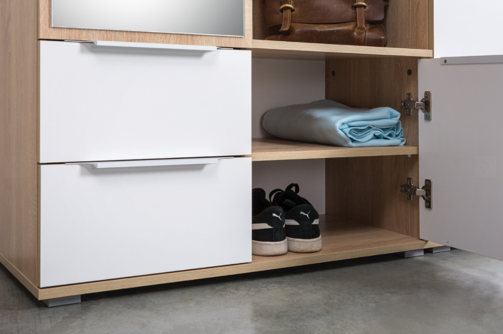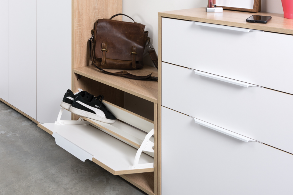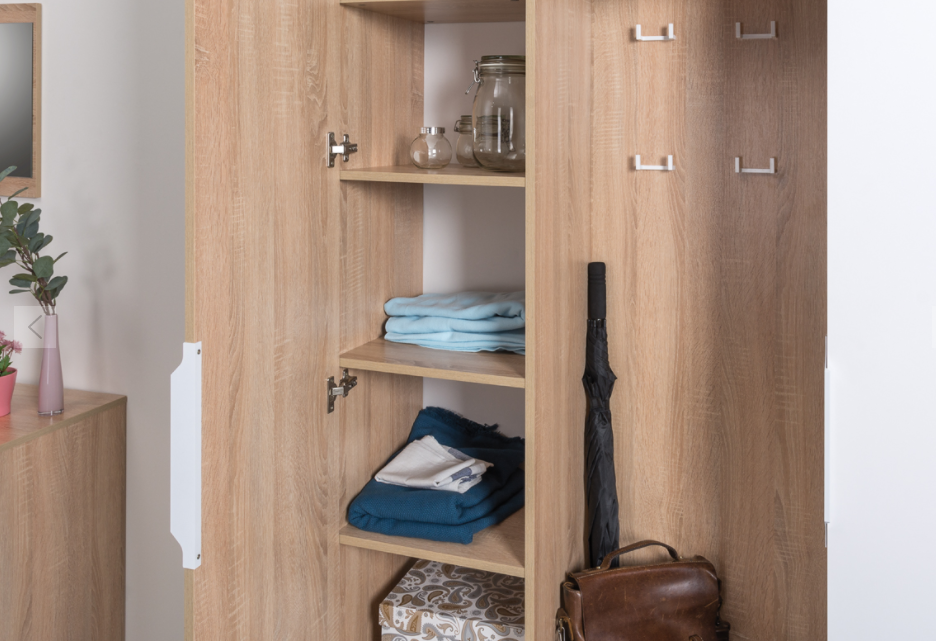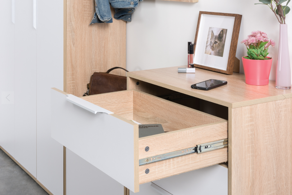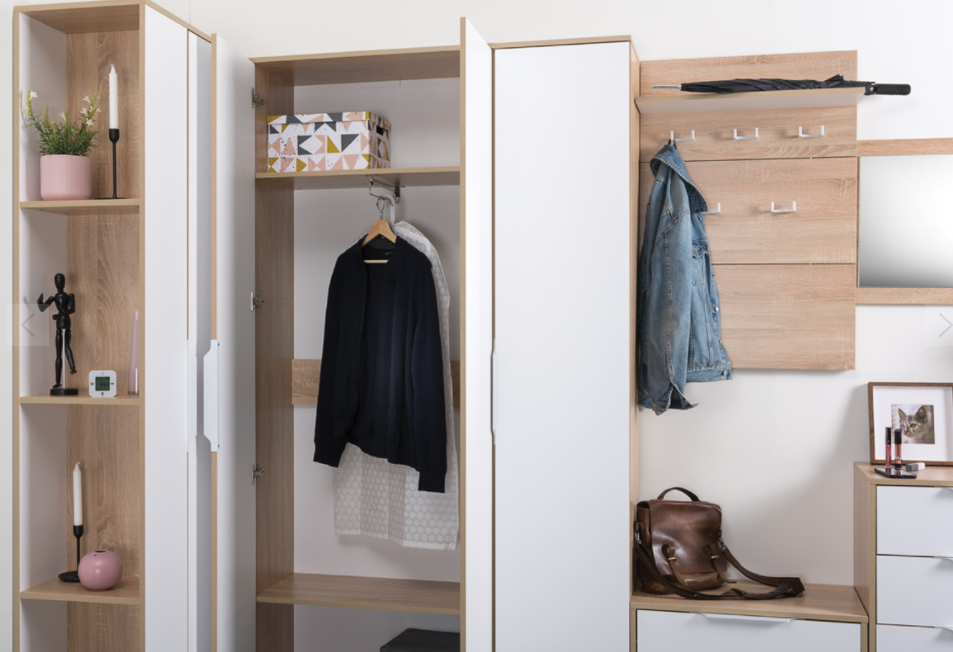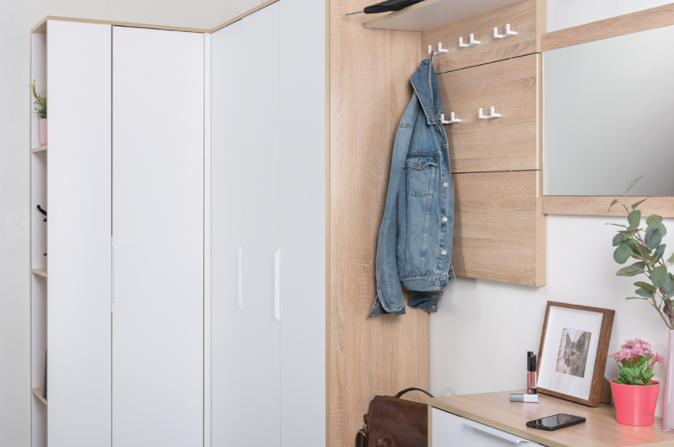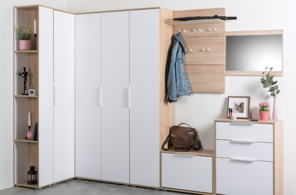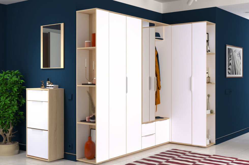 В линейке присутствуют модули с нестандартной конструкцией, которые не оставят без внимания узкие углы, повышая вместимость прихожей в разы.