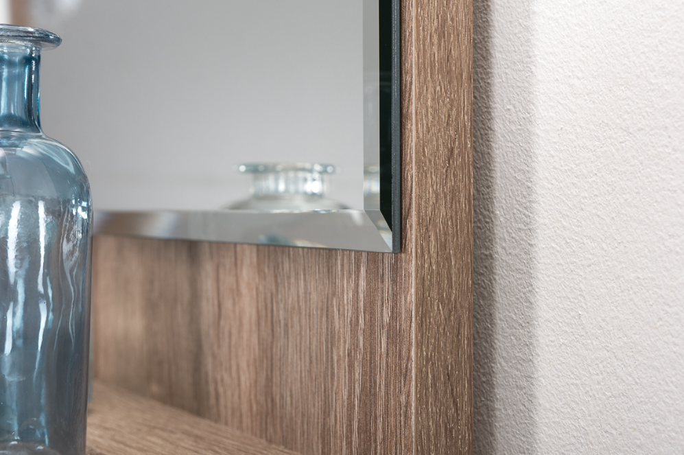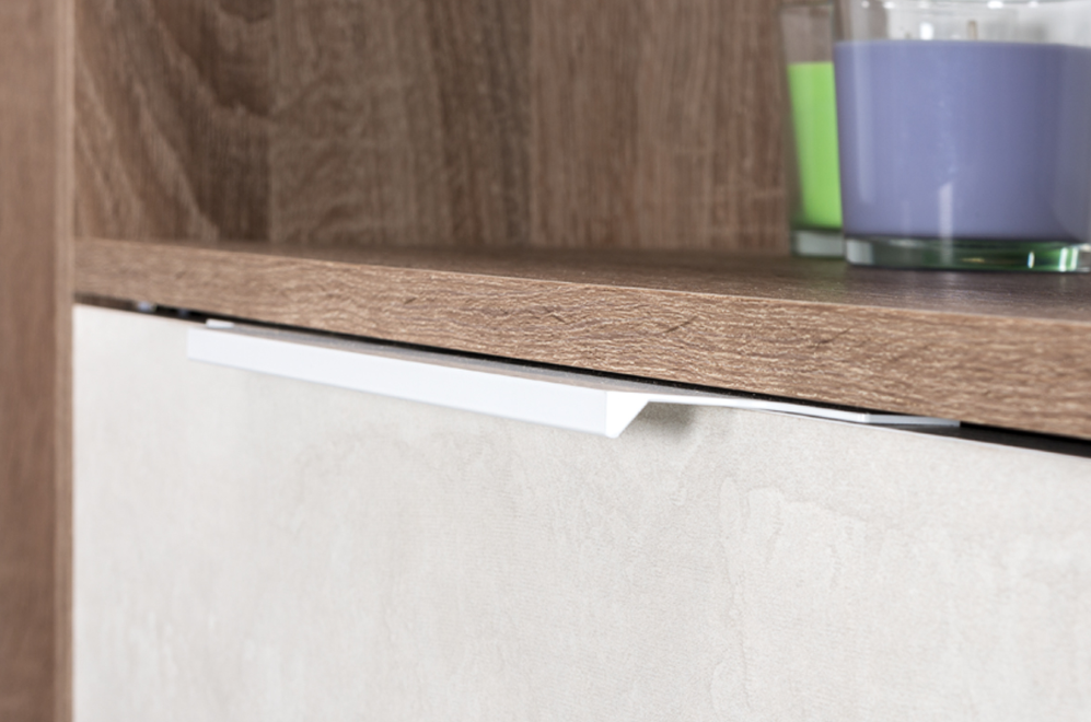 Декор натуральная древесная фактура и "шелковый камень" приятный на ощупь, напоминает ткань. Дизайнерские ручки из металла с белым глянцевым покрытием.