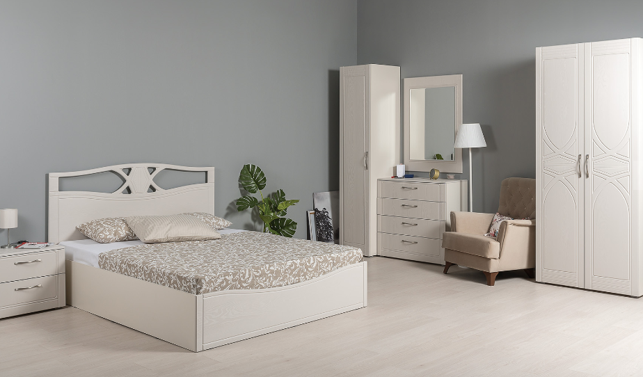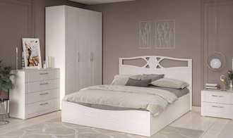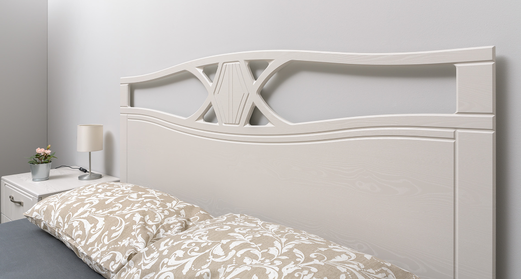 Изголовье кровати имеет выраженную сквозную фрезеровку, которая обеспечивает оригинальный и привлекательный внешний вид.