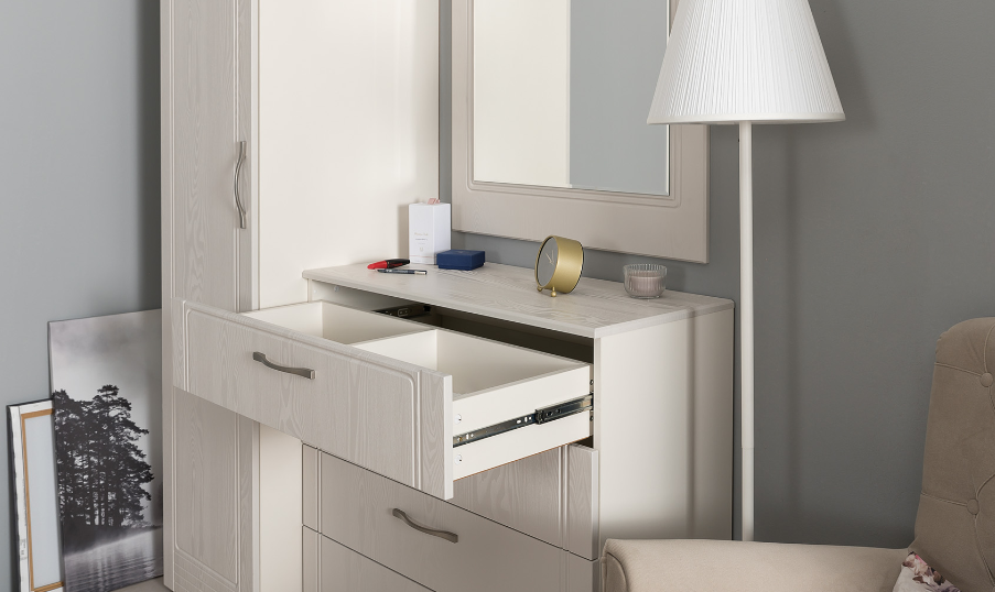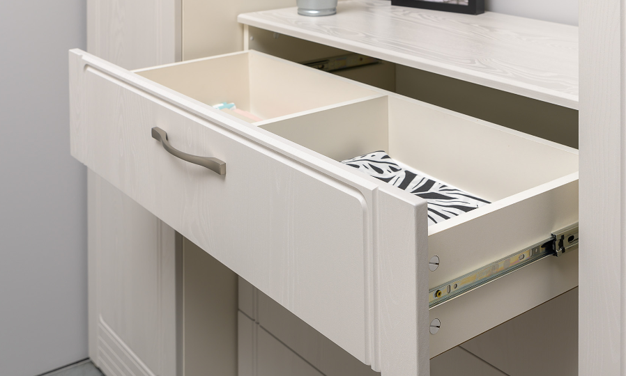 Выдвижные ящики оснащены шариковыми направляющими полного выдвижения.