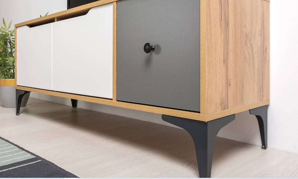 Тумба Вайс гармонично сочетает в себе строгий и брутальный декор крафтового дуба со спокойными скандинавскими фасадами.