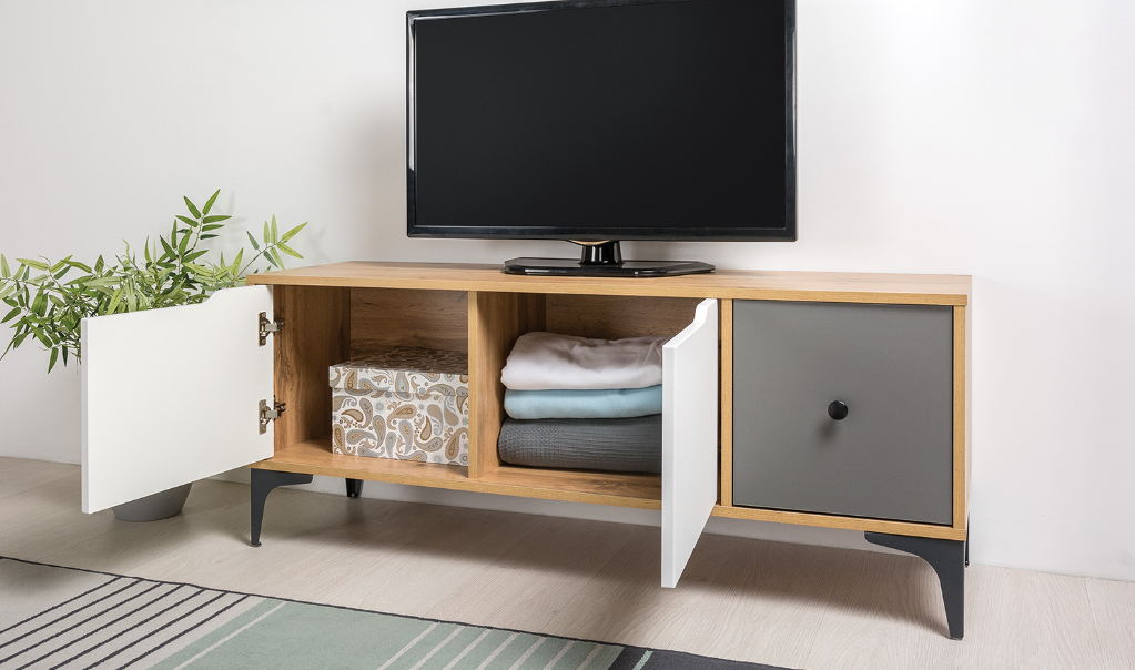 В сочетании с полкой 15.50, Тумба Вайс может стать основой для ТВ-зоны любой современной гостиной.