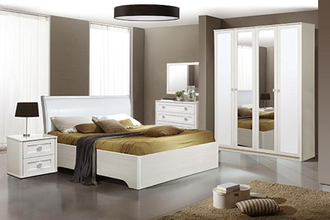 Мебельный гарнитур «Мона» – эстетичный комплект, способный украсить спальню и создать комфортные условия для отдыха. Блестящая фурнитура, изящные формы обеспечивают мебели привлекательный внешний вид.