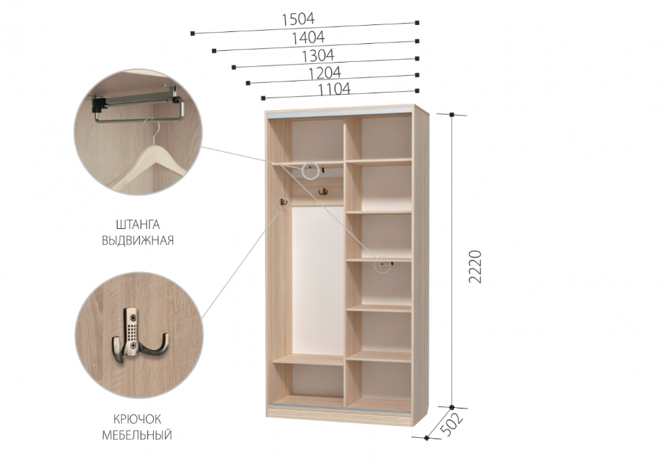 Высота2220 мм либо (2370 мм ширина 1500 мм)