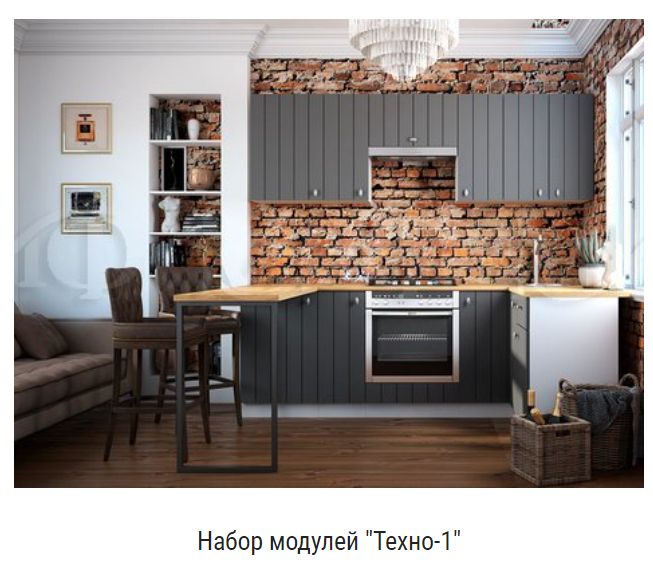 Фасады "Техно-1" не раздражают и не надоедают, а функциональность шкафов позволяет максимально использовать пространство. Эта элегантная кухня прекрасно подойдёт для оформления небольших помещений, так как зрительно расширяет пространство.