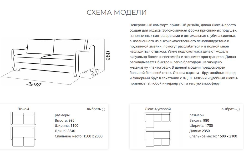 Невероятный комфорт, приятный дизайн, диван Люкс-4 просто создан для отдыха! Эргономичная форма приспинных подушек, наполненных синтешариками и оптимальная глубина сиденья, выполненного из высококачественного пенополиуретана и пружинной змейки, помогут расслабиться и в полной мере насладиться отдыхом. Узкие подлокотники делают модель визуально более «невесомой» и экономят пространство. Диван раскладывается быстро и легко благодаря шагающему механизму «пантограф». В данной модели предусмотрен большой бельевой отсек. Основа каркаса - брус хвойных пород и фанерный брус в сочетании с ЛДСП. Мягкий и удобный Люкс-4 привнесет в любой интерьер уют и теплую атмосферу!
